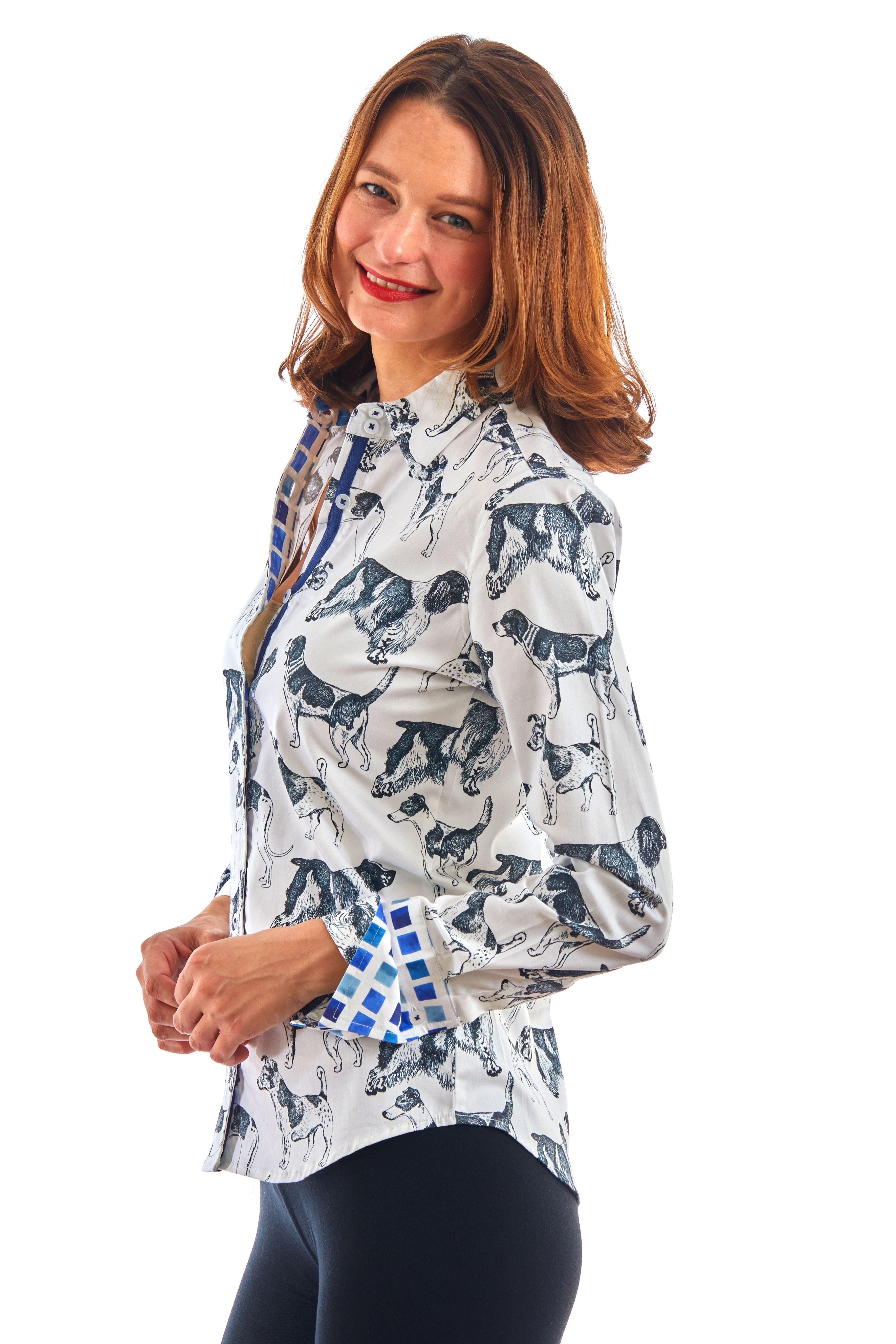 Introducing our Rome Shirt Black White Doggies, a stunning example of elegance in Shirt design. Made from cotton spandex, it offers a comfortable and flattering fit. This piece is a must-have for those who value both style and comfort.