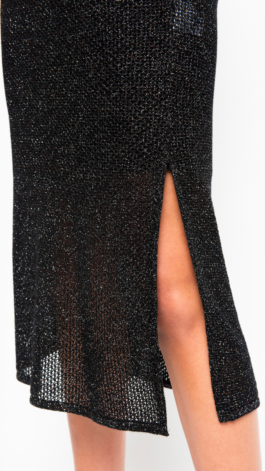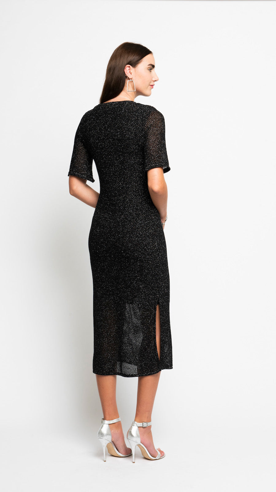 Simona Shimmer Mesh Knit Short Sleeved Long Dress; Black Silver