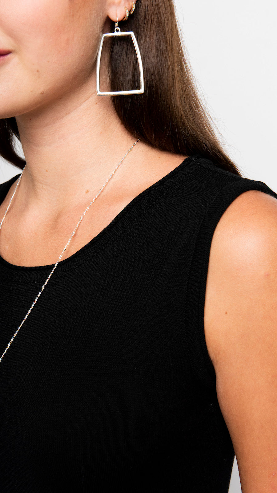 Milano knit sleeveless sheath dress; Round neck; Above knee; Darts accentuate the waist line and enhance the shape; Can be worn on its own or with a Simona or Sabrina mesh dresses on top; Made of light weight supple viscose blend;