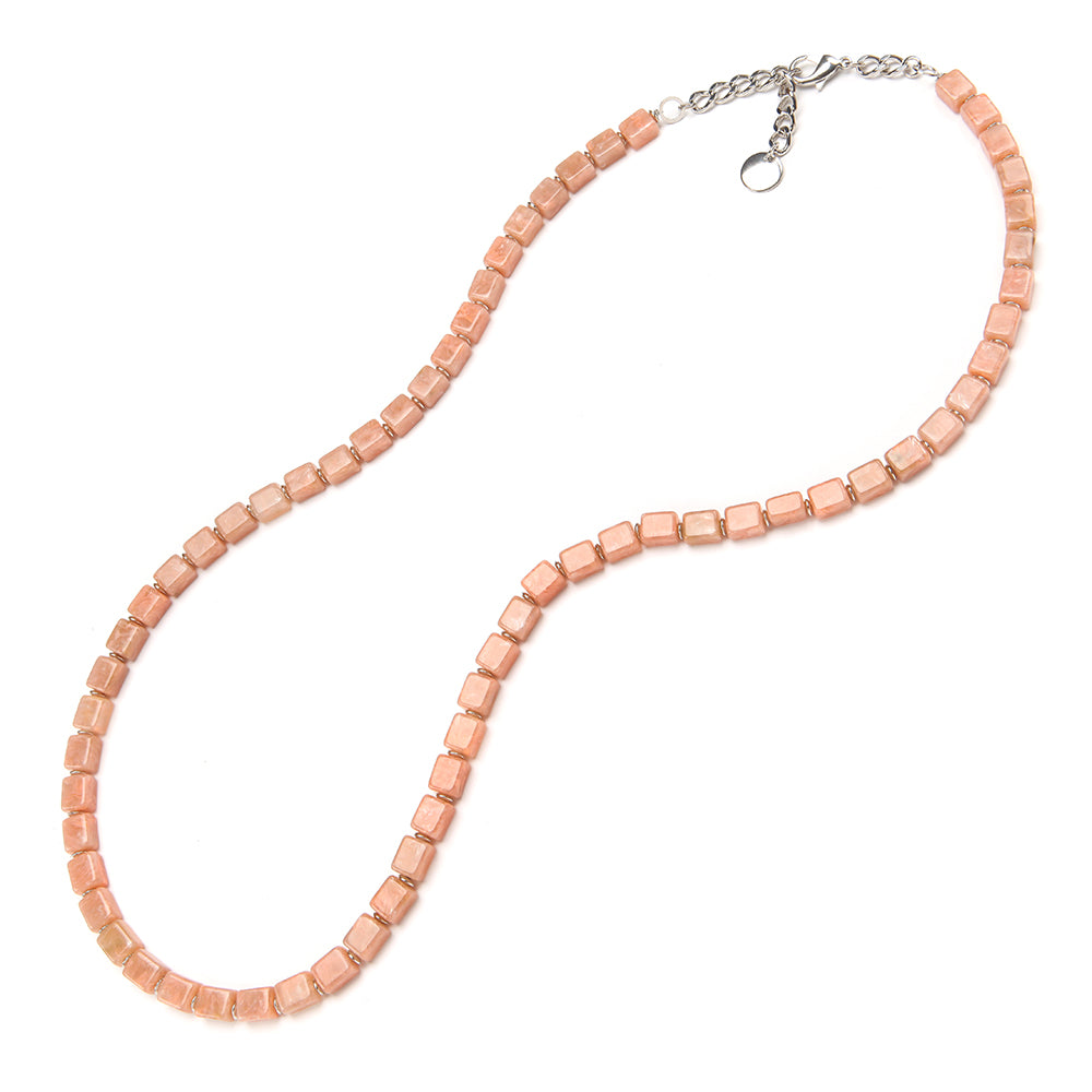 Creamy colors of soft clean geometrics create the perfect daytime chic! The Suzanna may be worn long or doubled.