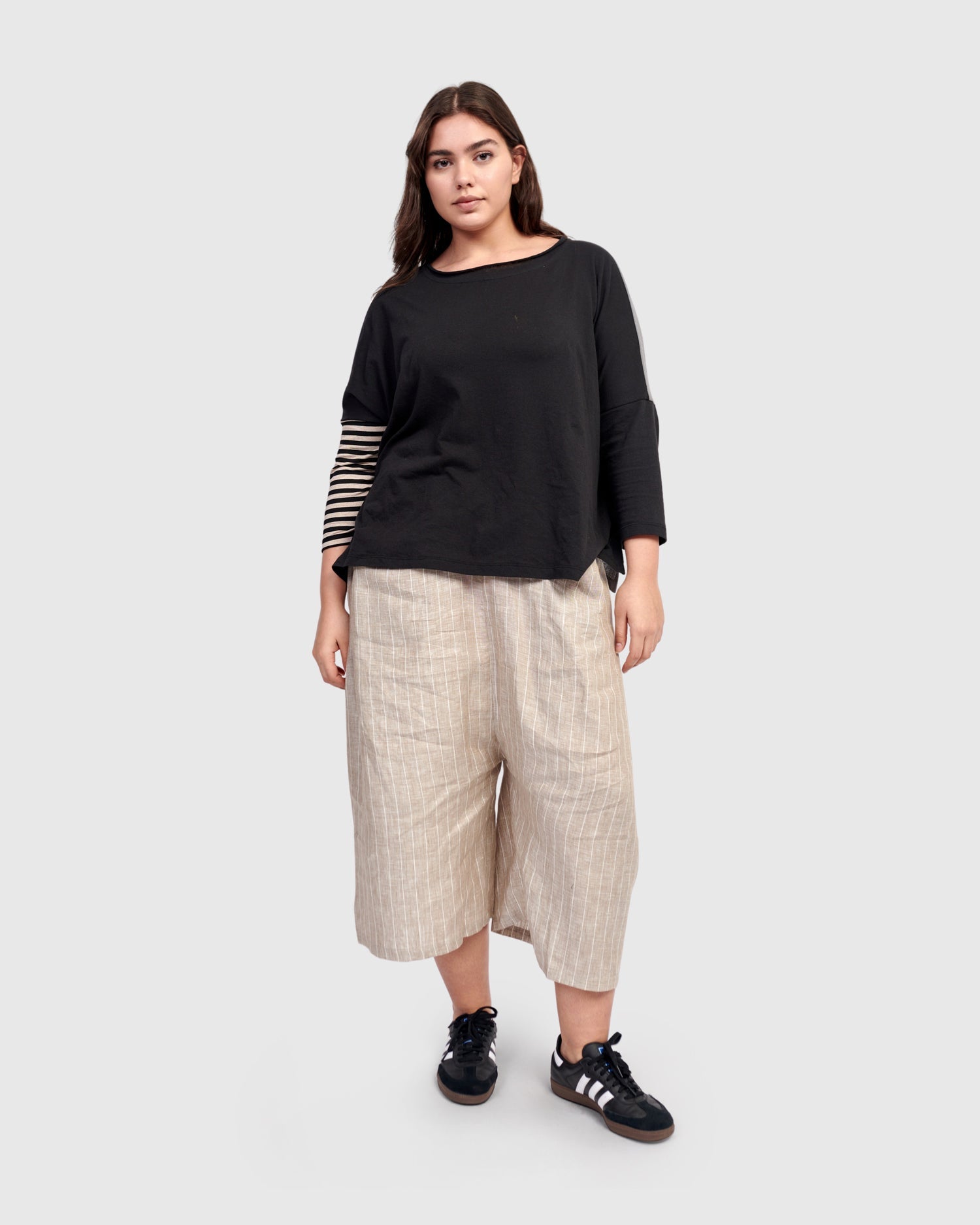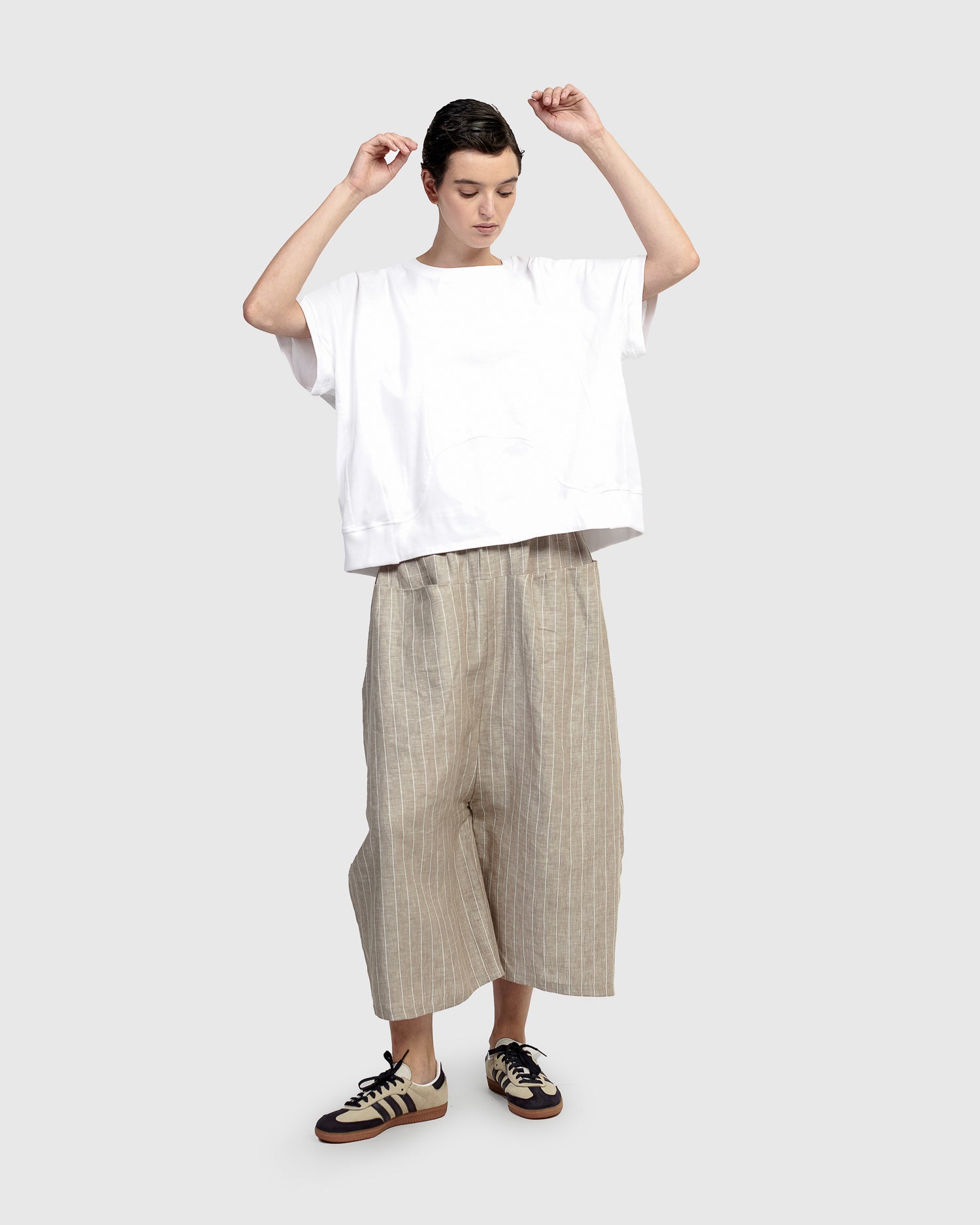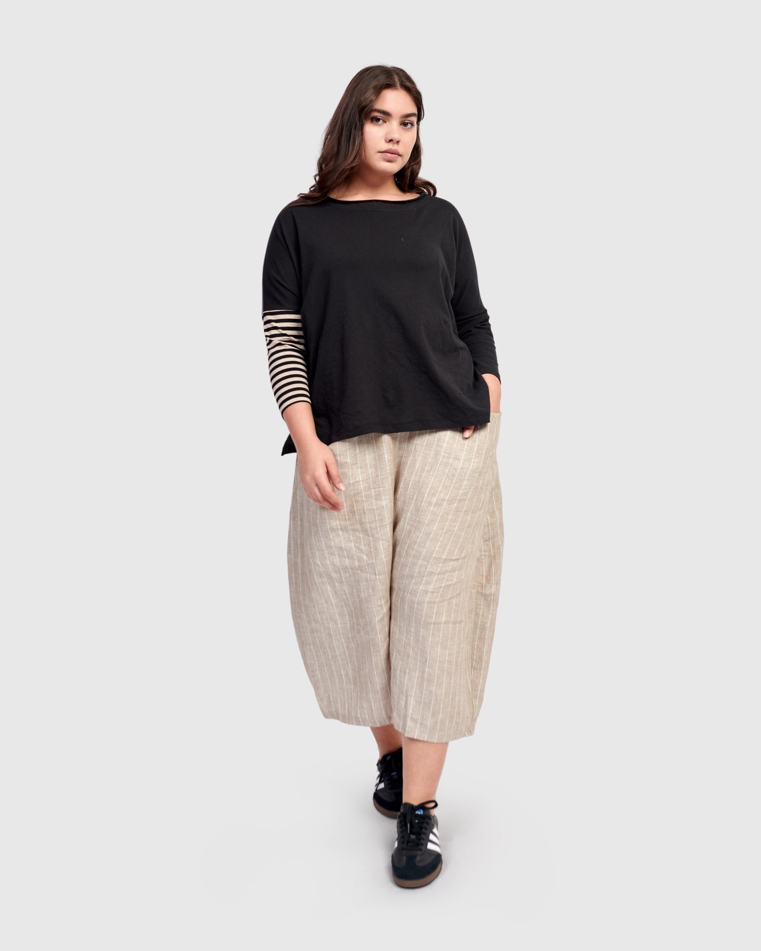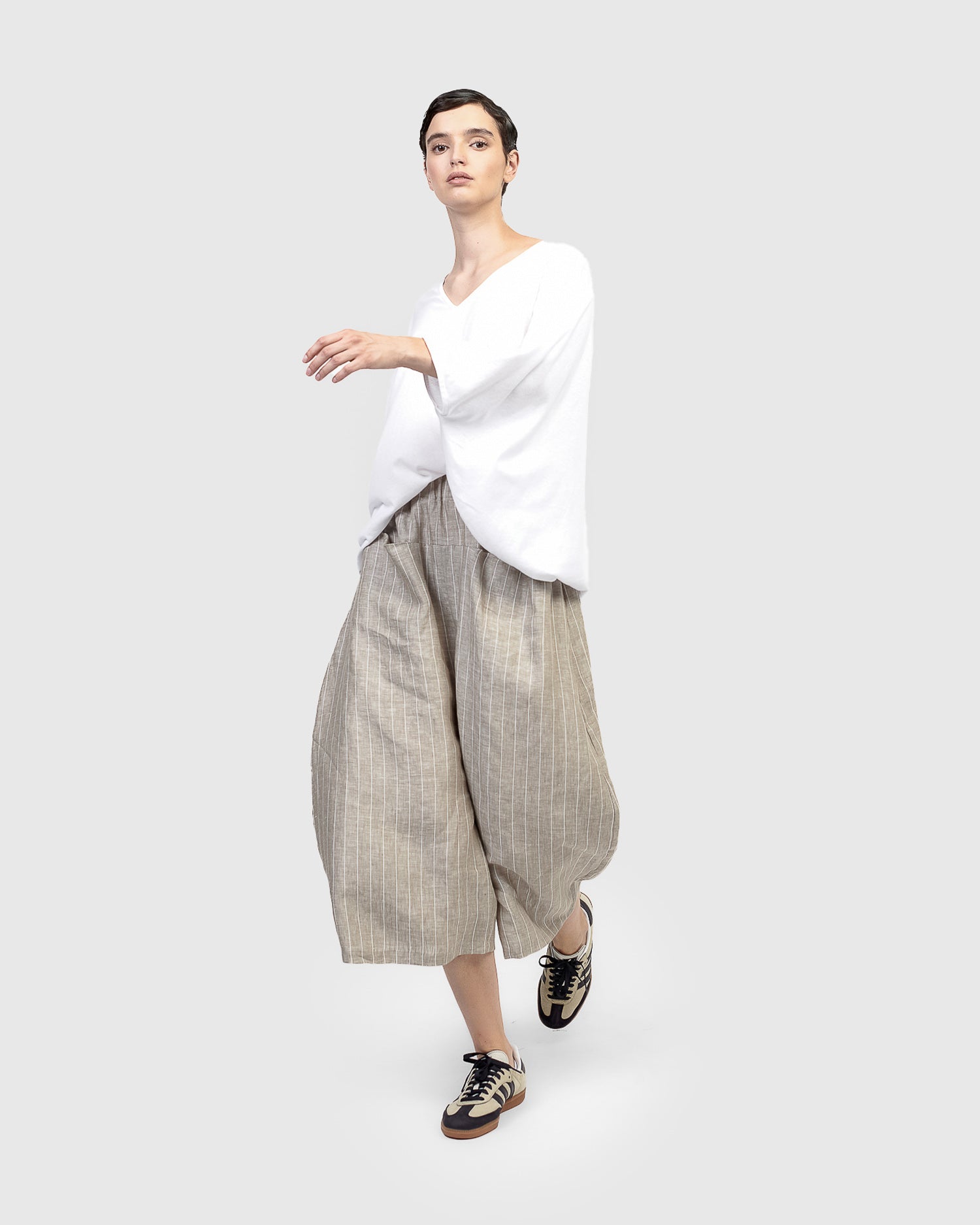 - High-rise, loose fit with drop-crotch, cropped length