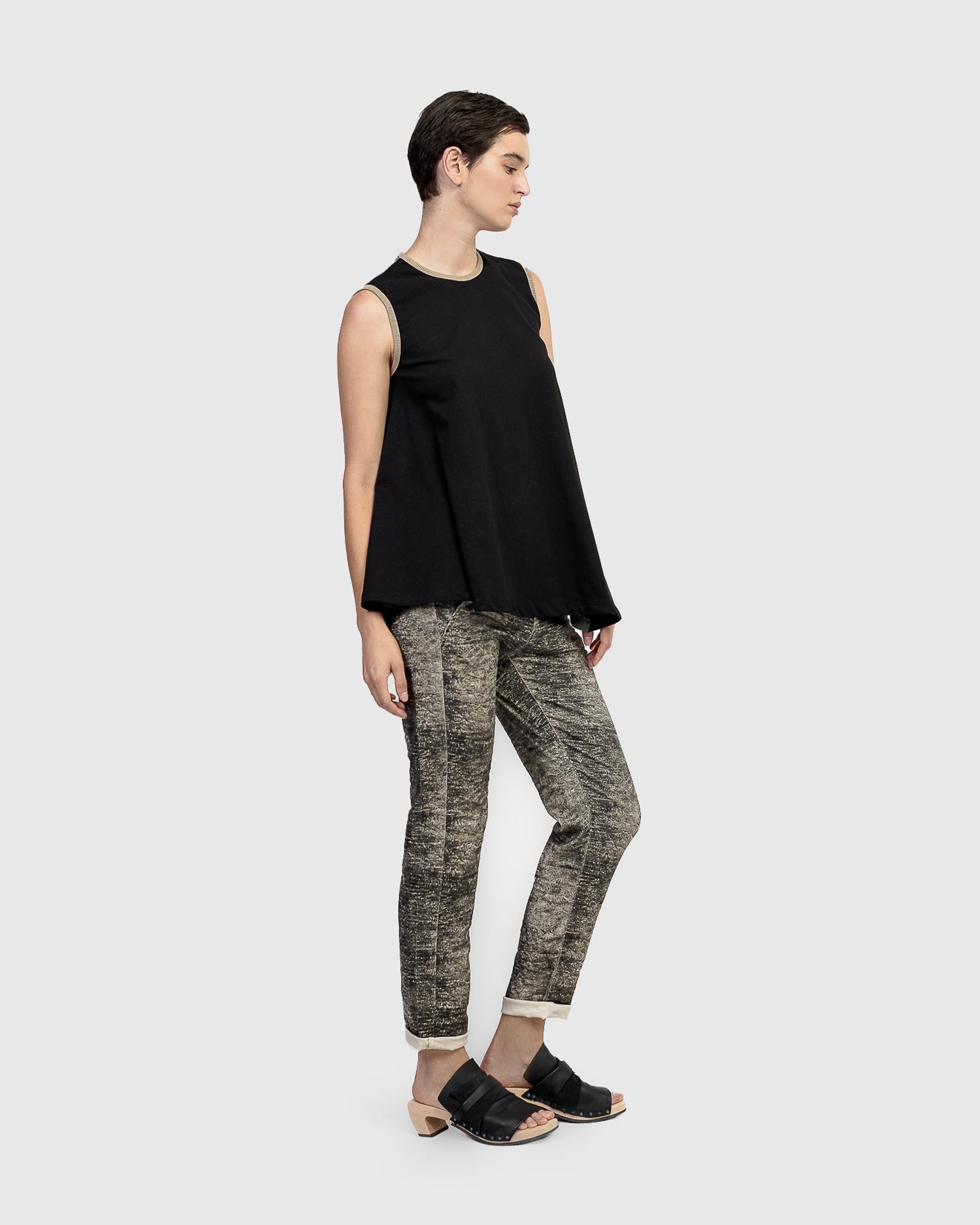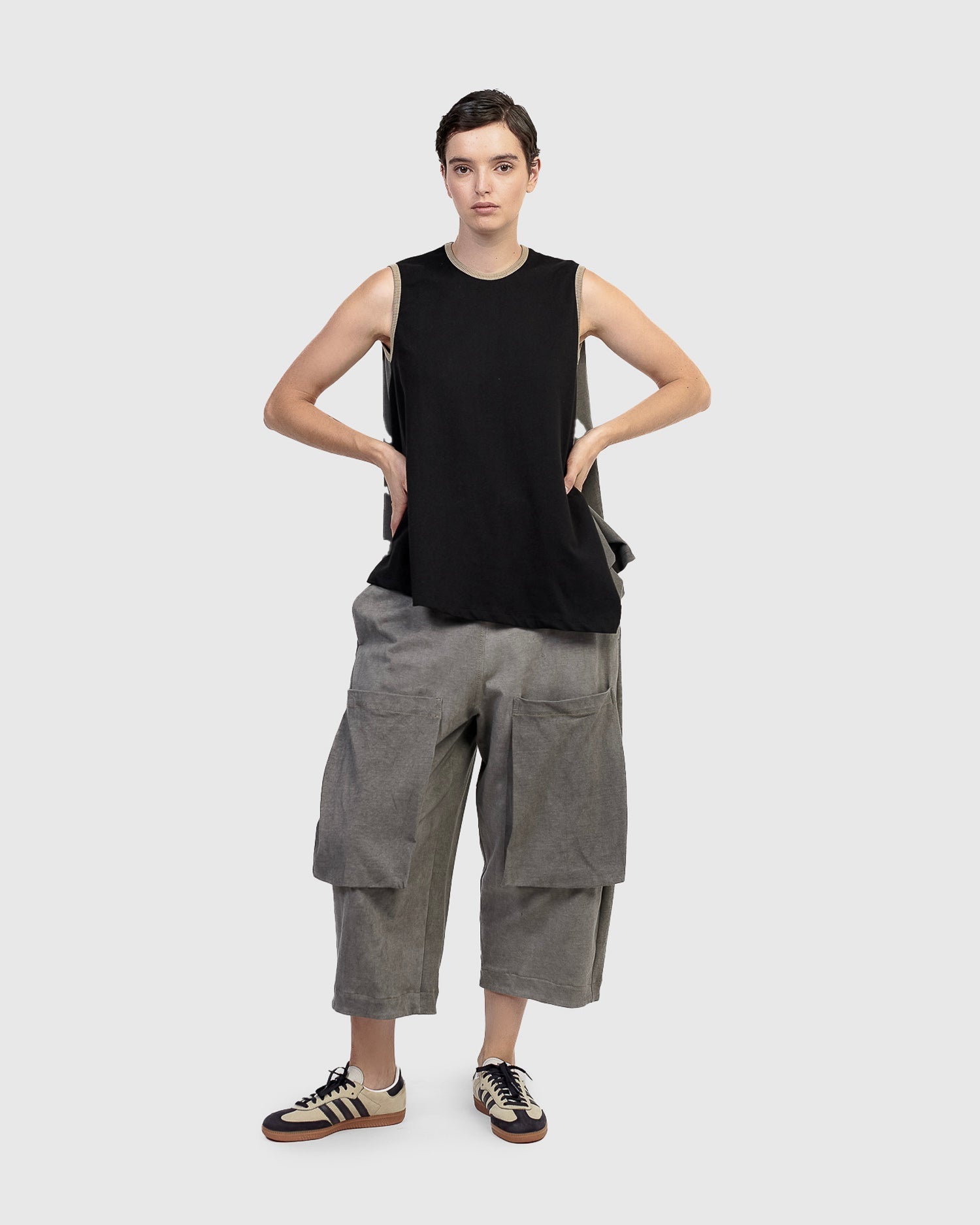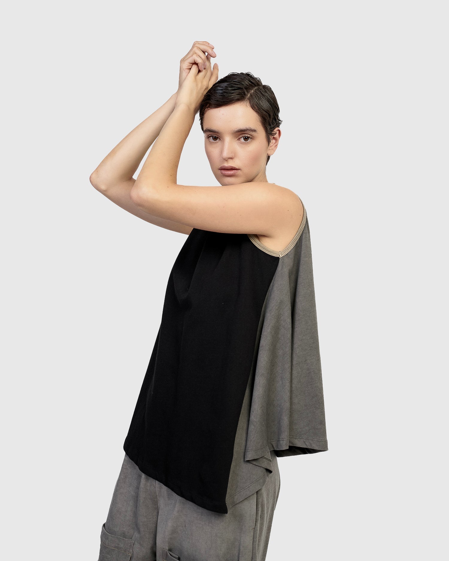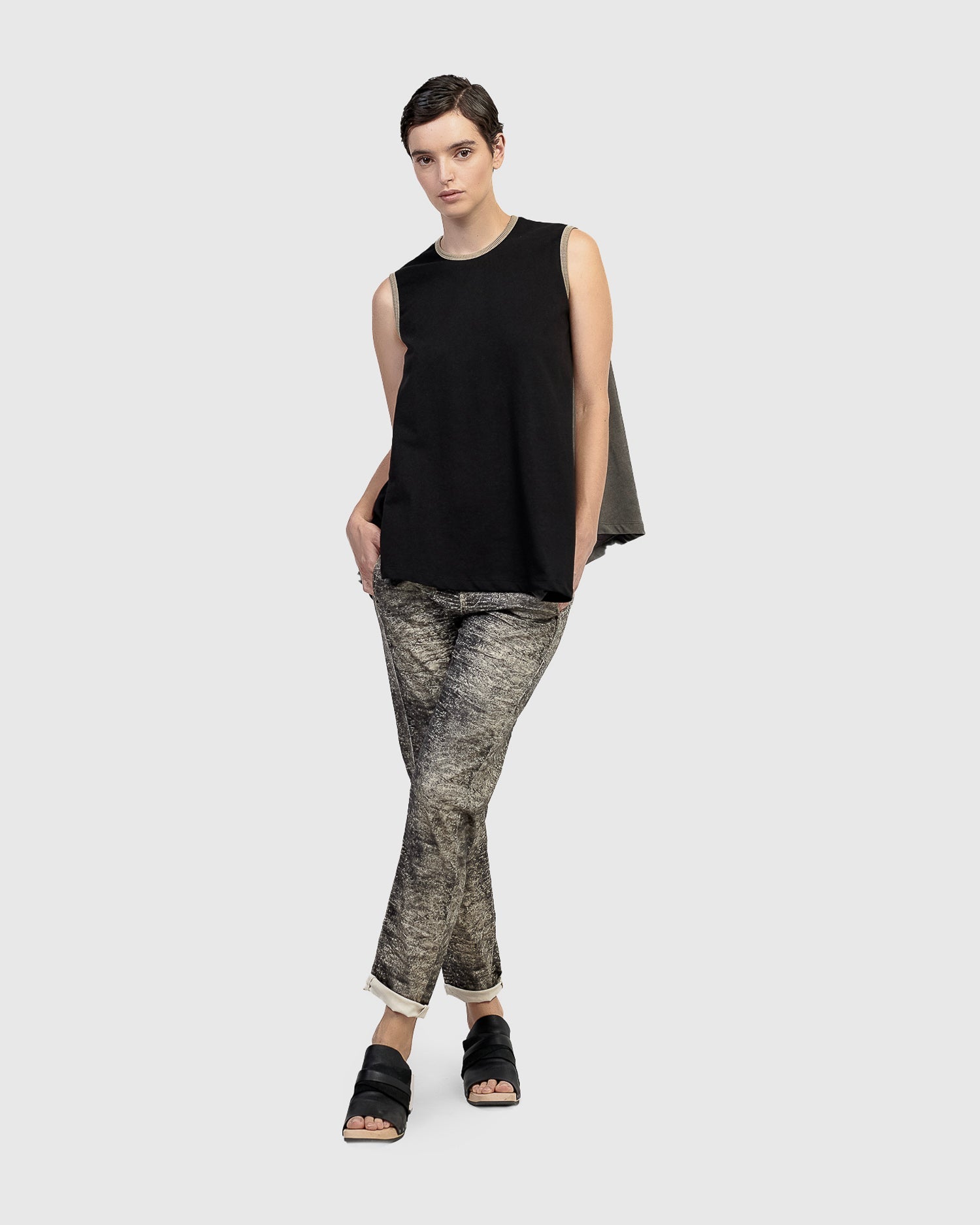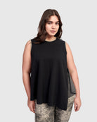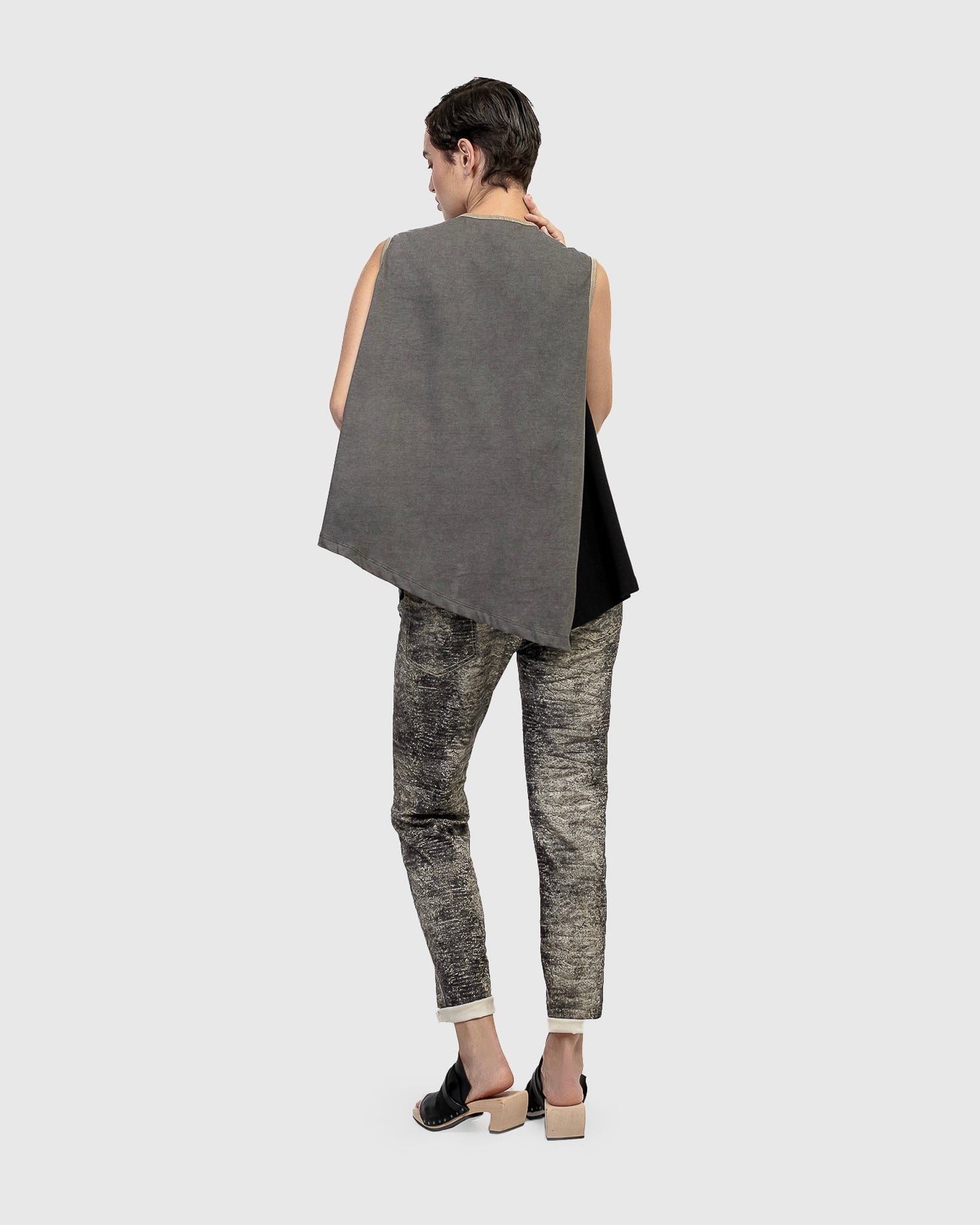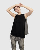 This sleeveless top is made up of clean lines in a swingy, A-line silhouette. Crafted in a midweight cotton knit, it has a crew neck, asymmetric hem, and oversized pullover fit.